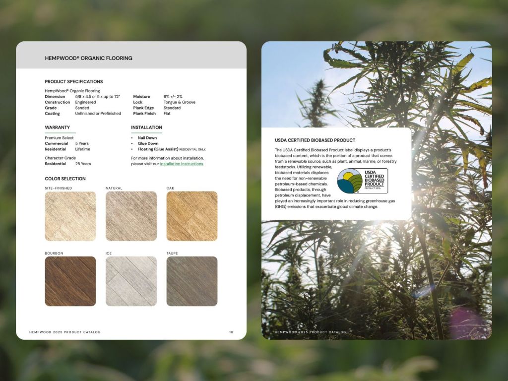 These materials are often HempWood’s first point of contact for architects and other industry professionals, and their presentation is crucial in building trust to support big purchasing decisions.
