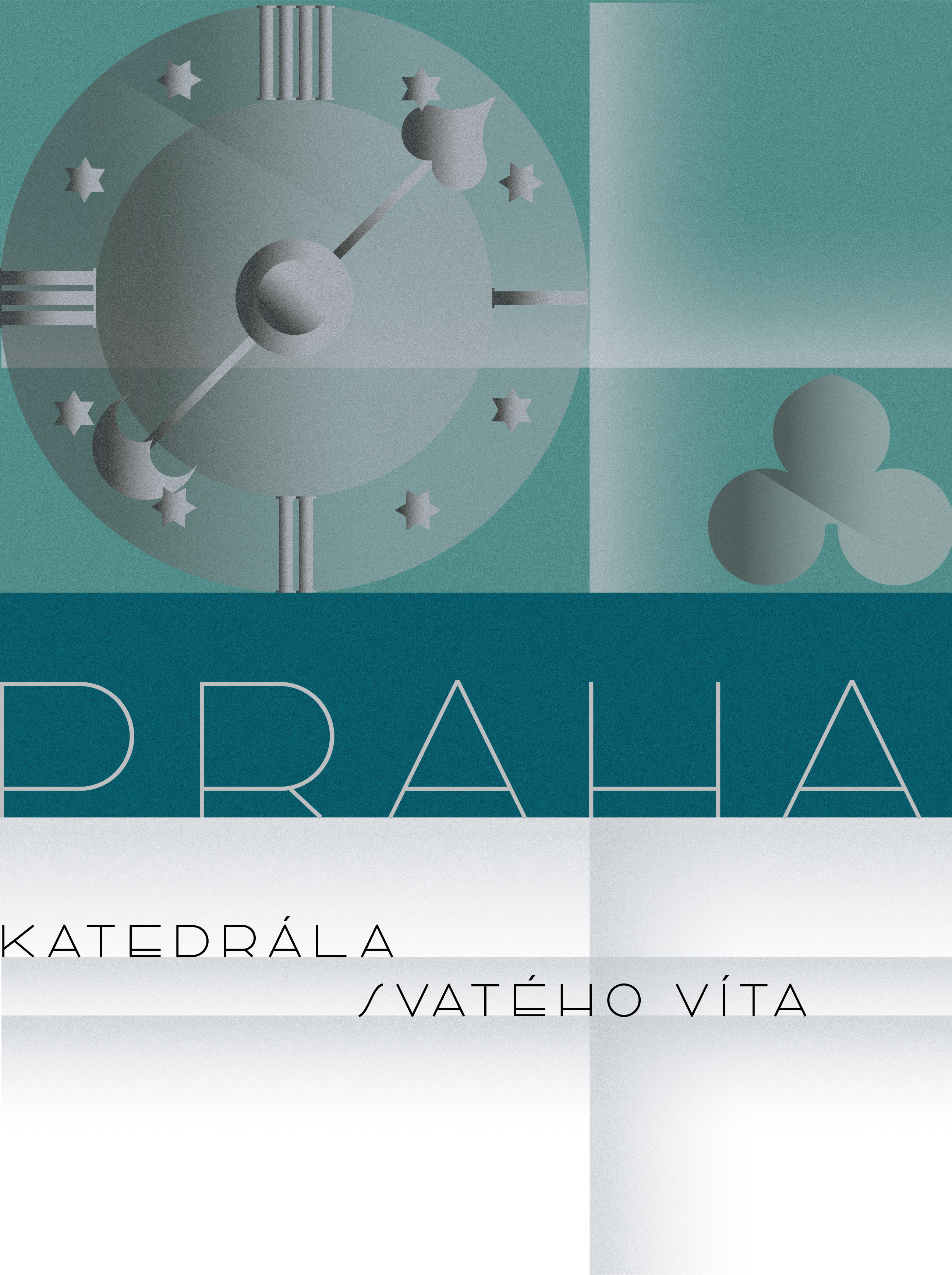 I created this poster design for my independent study art history class that I took while studying abroad in Prague in July 2023. The poster uses design elements from the face of St. Vitus Cathedral in Prague such as the clock and window tracery. I used the golden spiral and golden ratio to create this composition because Gothic architecture was based on similar ratios and proportions. I also used gradients inspired by Czech Cubist works of art. The typography is sized and aligned using the golden radio as well, and I chose to use an Art Deco inspired font for the poster for a 1920’s feel.